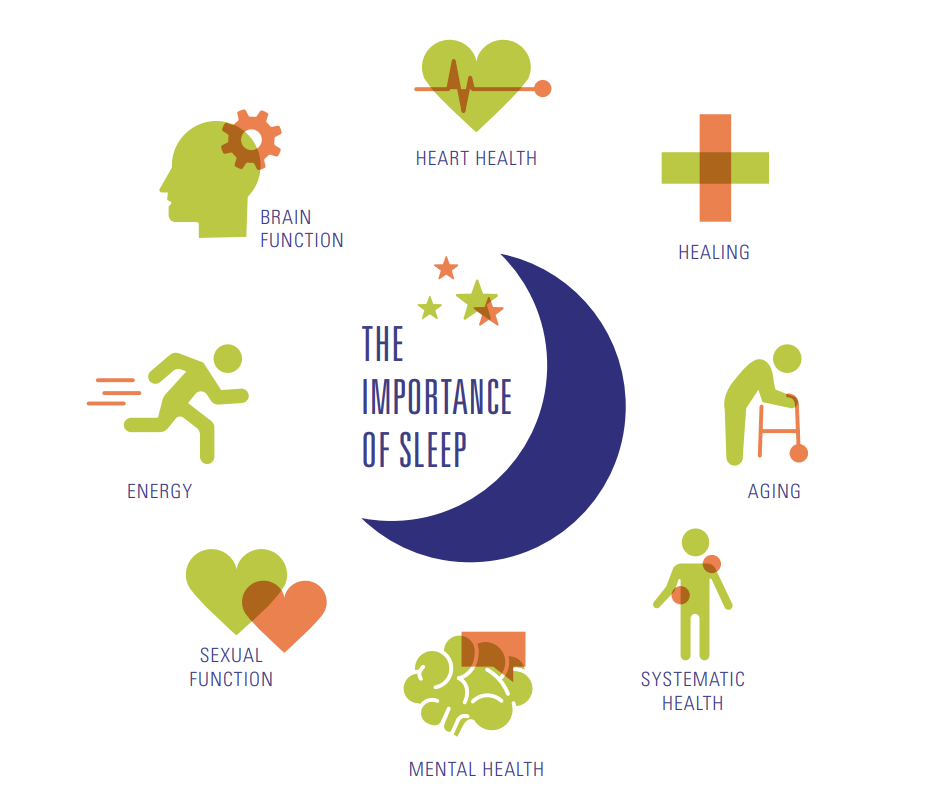 Sleep is essential to good health. During sleep, the body and mind heal, restore andrecharge, clearing out toxins and the effects of daily life. Without healthy sleep, the riskof physical and mental ailments is increased—both long and short term. Study after studylinks quality sleep to improved memory, fewer aches and pains, decreased risk of chronicdiseases like high blood pressure and heart disease and many other health problems.